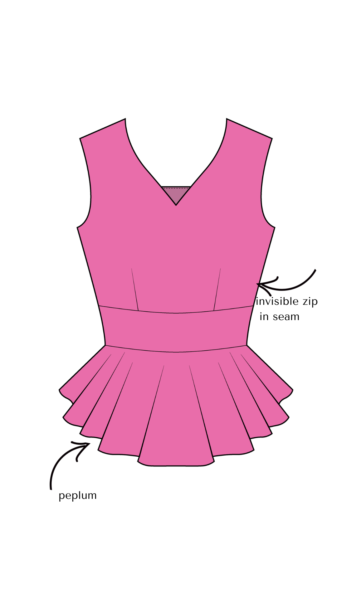 Sweet Talk is the Sewing Pattern that you need! A glamorous style, View A has it has perfectly placed inseam pockets, a statement cut out at the back & a gathered skirt. View B is an effortlessly stylish peplum top.